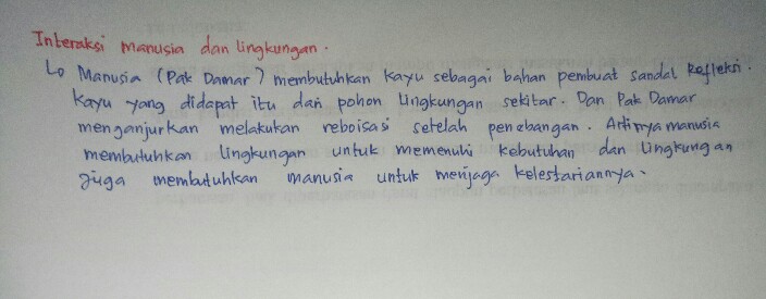 Beliau juga memberdayakan masyarakat sekitar sebagai tenaga kerjanya. Interaksi pertama adalah pak damar yang mengambil batang kayu dari hutan untuk bahan baku industri sandal refleksinya. 1 identifikasilah interaksi manusia dan lingkungan pada bacaan 1 identifikasilah interaksi manusia dan lingkungan pada bacaan di soal nomer1 identifikasilah interaksi. Kunci jawaban buku siswa tema 4 kelas 5 halaman 65 67 69 71 72 kunci jawaban tema 4 merupakan alternatif isian dari soal soal yang terdapat pada buku paket tematik siswa kelas 5 sehat itu penting subtema 2 gangguan kesehatan pada organ peredaran darah. Beliau juga memberdayakan masyarakat sekitar sebagai tenaga kerjanya.