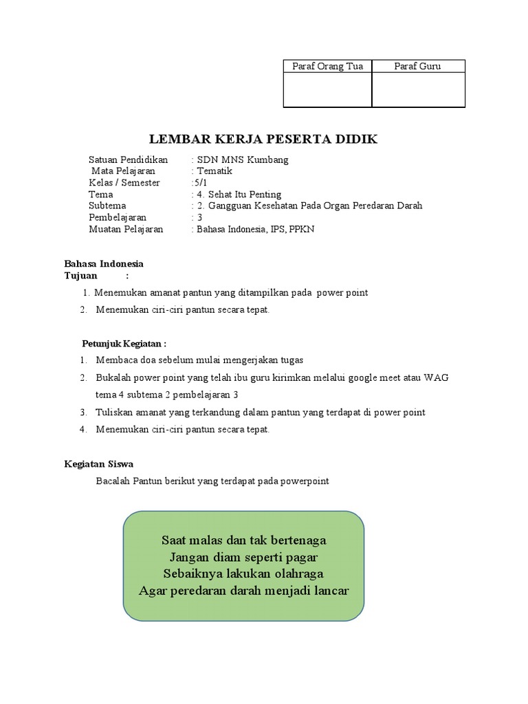 Kunci jawaban buku siswa tema 4 kelas 5 halaman 65 67 69 71 72 kunci jawaban tema 4 merupakan alternatif isian dari soal soal yang terdapat pada buku paket tematik siswa kelas 5 sehat itu penting subtema 2 gangguan kesehatan pada organ peredaran darah.